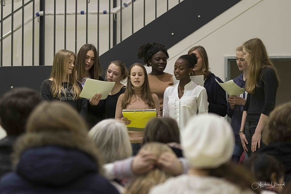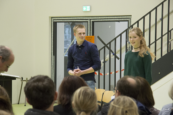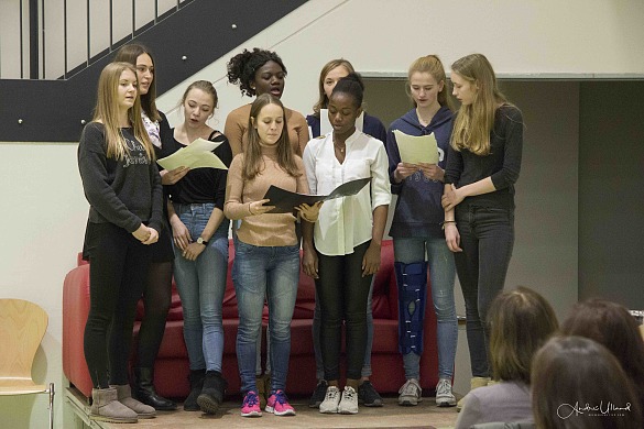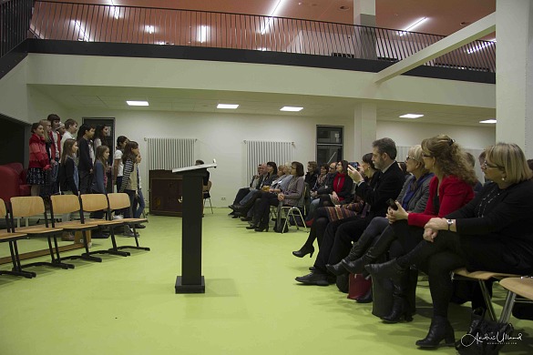 Die französische Delegation freute sich, die Aktivitäten der bilingualen Klasse 5a und der Schüler der Oberstufe, die gleichzeitig das deutsche und das französische Abitur (AbiBac) erwerben werden, zu verfolgen. Es wurde gesungen und musiziert, ein Sketch vorgetragen und eindrucksvolle chemische und physikalische Versuche in französischer Sprache demonstriert. Jean François Chanet wurde selbst Flammen werfend aktiv.
