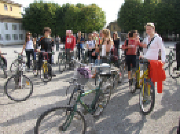Wir verbrachten den Montagnachmittag in den sehr freundlichen Gastfamilien. Am Dienstagvormittag trafen wir in unserer Partnerschule die anderen Comenius-Partner aus Mallorca, Spanien; Moravské Budejovice, Tschechien; Trabzon, Türkei und Landskrona, Schweden. Der Tag begann für uns mit einem Kennenlernspiel und einer Führung durch die Schule, gefolgt vom – wie sollte es in Italien auch anders sein? – sehr leckeren Mittagessen. Als schließlich alle gut gesättigt waren, startete auch schon die erste Fahrradtour, die von Gorgonzola bis Cassano d’Adda und zurück führte. Während der Tour, die von den italienischen Schülern sehr gut geführt und mit interessanten Informationen versehen wurde, erfuhren wir einiges über die schöne Landschaft, die uns umgab. Von einigen Problemen mit den Leihfahrrädern, die entweder zu groß, zu klein oder gleich ganz kaputt waren, abgesehen, war diese erste Tour ein voller Erfolg.