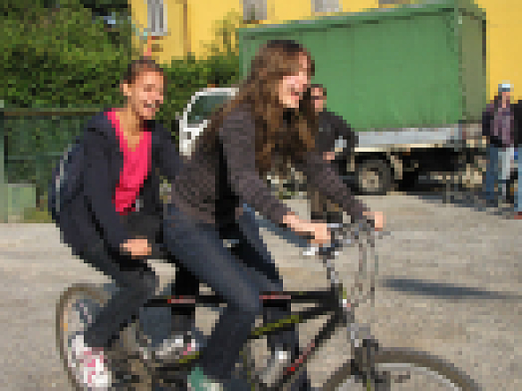 Am nächsten Tag begann dann unser Programm. Wir trafen uns früh morgens um 09:00 Uhr, als unsere Gäste freundlich von der Schulleiterin Christel Kelm begrüßt worden sind. Danach lernten wir uns untereinander anhand diverser Spiele besser kennen und weil das bisherige Programm so anstrengend war, gab es auch gleich Frühstück hinterher. Dort bedienten wir uns dann, bis das Security Training anstand, bestehend aus einem kleinen Fahrrad-Parcours, in dem alle überlebenswichtigen Fahrrad-Techniken abgefragt und gelehrt wurden und aus einem kleinen Vortrag über die Verkehrsregeln in Deutschland.