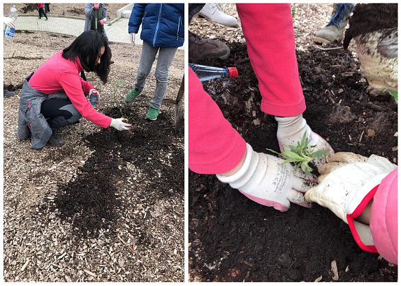 Der Garten ist cool. Es hat Spaß gemacht, die Pflanzen einzupflanzen.